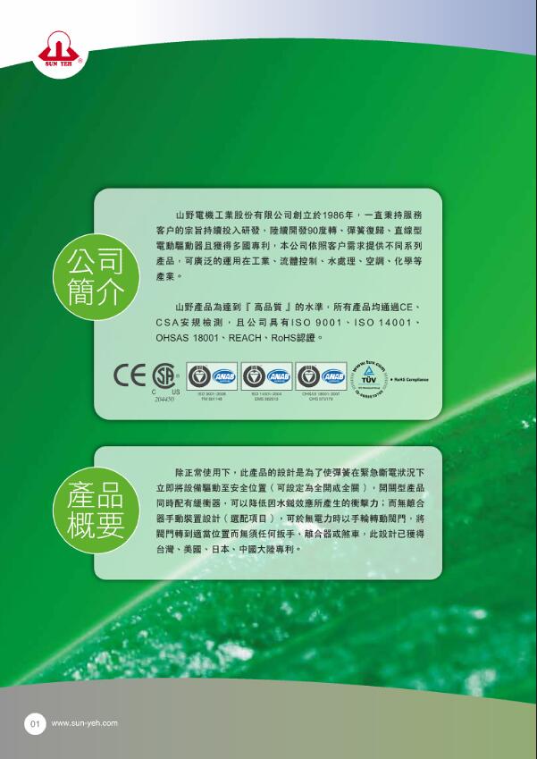 臺灣SUN YEH山野電動執(zhí)行器
